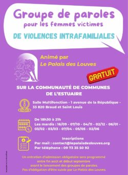 De septembre 2025 à juin 2026, le Palais des Louves organise des groupes de parole dans les 4 Communautés de Communes de la Haute Gironde.