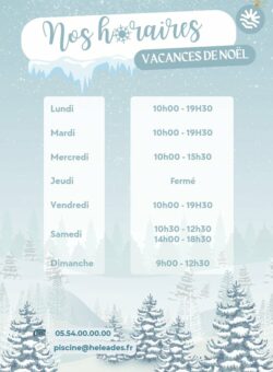 LES HÉLÉADES : HORAIRES D’OUVERTURE VACANCES DE NOËL DU 20 DÉCEMBRE AU 04 JANVIER