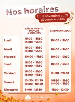 Horaires d’ouverture du 20 au 31 octobre 2025