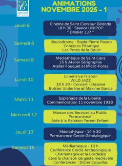 PLANNING DES ACTIVITÉS DU MOIS NOVEMBRE 2025-1 Publié le jeudi 30 octobre 25 Temps de lecture1' PLANNING DES ACTIVITÉS DU MOIS NOVEMBRE 2025-1 Application INTRAMUROS