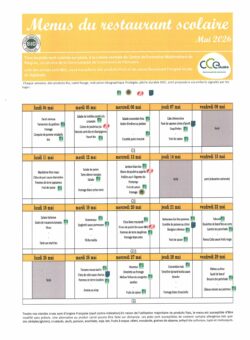 RESTAURATION SCOLAIRE – MENUS MAI 2026 Publié le mercredi 15 avril 26 Temps de lecture1' Menus restauration scolaire pour le mois de Mai 2026 Application INTRAMUROS
