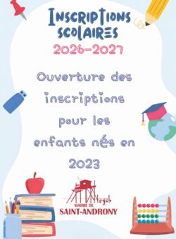 Dans le cadre de la rentrée scolaire de septembre 2026 en classe de petite section maternelle à l’école de Saint-Androny, les familles d’enfants nés en 2023 d’Anglade et de Saint-Androny sont invitées dès à présent à procéder aux formalités administratives d’inscription, munies des pièces justificatives suivantes :