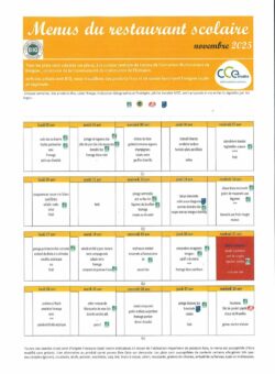 Menu du restaurant scolaire d’ANGLADE pour novembre 2025 (pour les parents des enfants de St-Androny scolarisés sur Anglade).