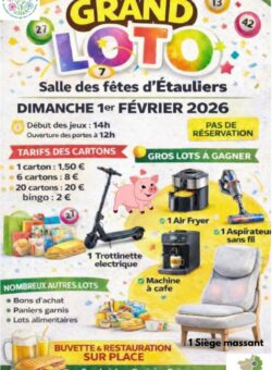 Salle des fêtes d’Etauliers ouverture des portes à 12h et début des jeux à 14h