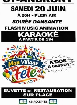 Mon Village en Fête vous propose une journée festive à Saint-Androny, avec au programme : initiation au tir à l’arc durant la journée, suivie en soirée d’un repas dansant et d’une soirée karaoké en plein air.