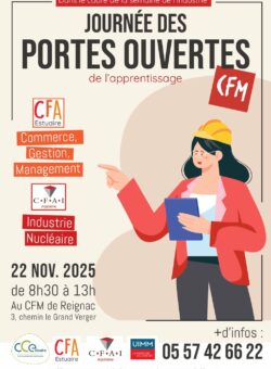 Ne manquez pas le rendez-vous au CFA Estuaire : nous vous ouvrons nos portes le samedi 22 novembre, de 8h30 à 13h.