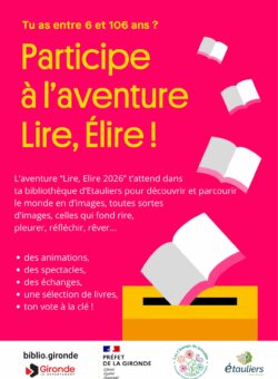 L’aventure Lire, Elire, c’est repartie! Notre bibliothèque municipale d’Etauliers a encore était sélectionnée pour participer à cette nouvelle aventure!