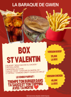 La baraque de Gwen pense à nos amoureux et propose sa box à partager pour la saint valentin composée de :