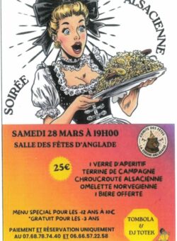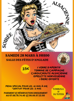 Le comité des fêtes d’Anglade vous invite à une soirée placée sous le signe de l’Alsace.