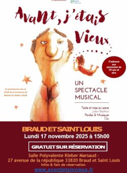Infos et lien de réservation : www.avantjetaisvieux.fr / 05 57 99 99 79 39