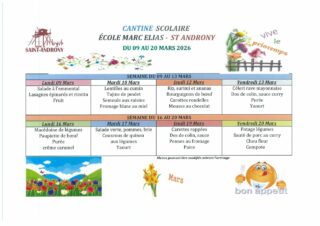 ST-ANDRONY – MENU DU RESTAURANT SCOLAIRE DU 09 AU 20 MARS
