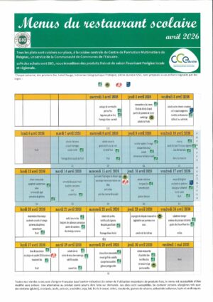 ST-ANDRONY – MENU DU RESTAURANT SCOLAIRE d’ANGLADE POUR AVRIL 2026