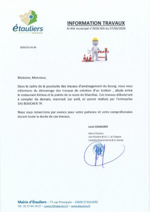 INFORMATION TRAVAUX – CREATION TROTTOIR