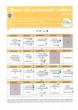 RESTAURATION SCOLAIRE – MENUS MAI 2026