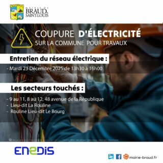 ⚡ Coupure d’électricité à Braud & St-Louis – Mardi 23 décembre 2025