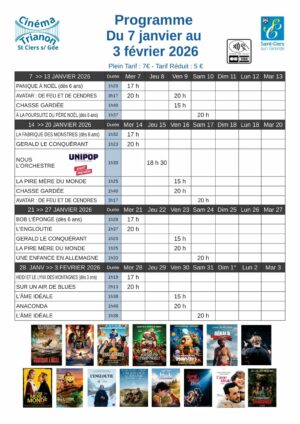 Programme du cinéma janvier 2026