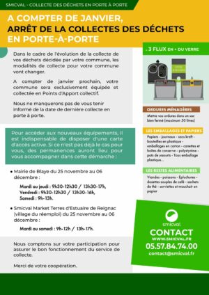 ♻️ Smicval : Fin des collectes en porte-à-porte en janvier – Braud et St-Louis