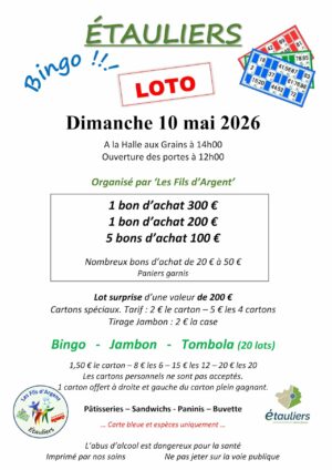 Grand Loto dimanche 10 mai 2026 – Salle des Fêtes ÉTAULIERS